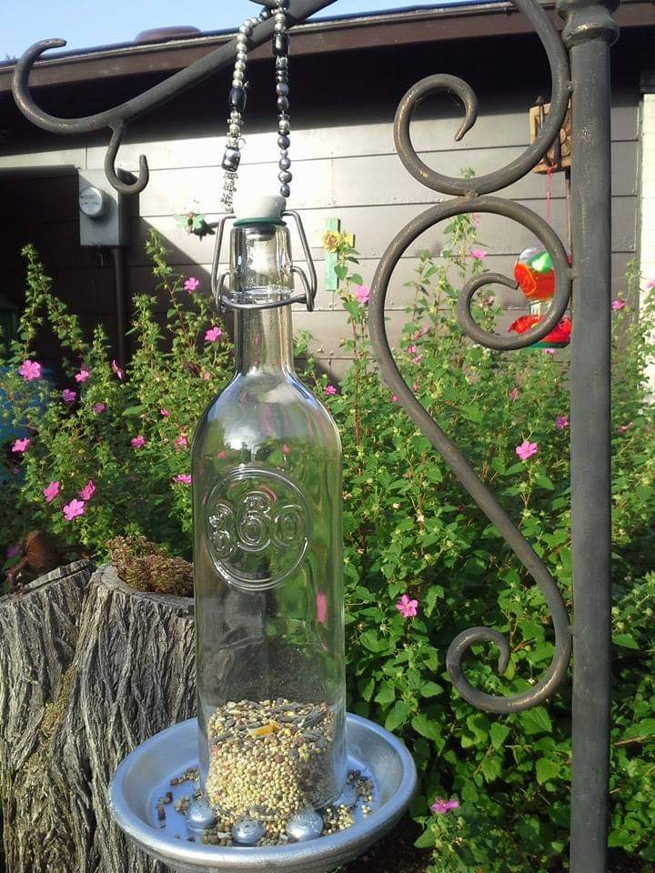 Wine Bottle Bird Feeder