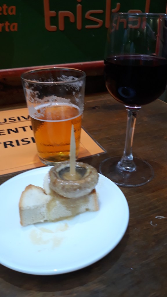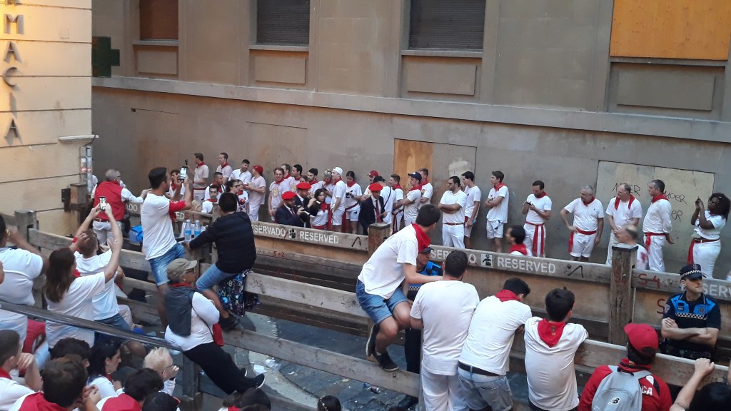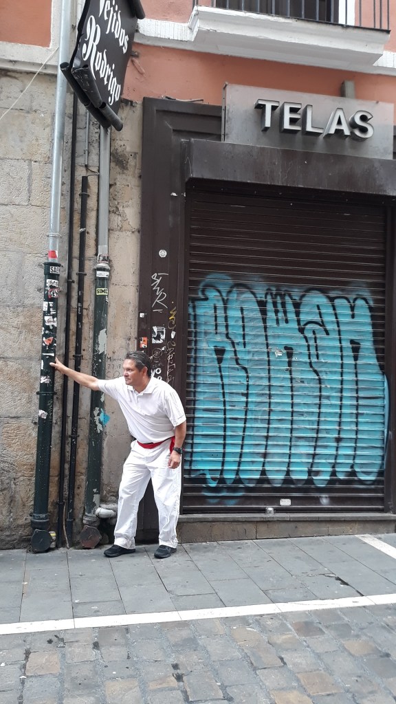 An early morning start by happenstance finds us right in the middle of the plaza where the Chumpanaza (opening ceremonies for the Fiesta de San Fermin) will take place at noon. There is a crowd gathering but little did we know how just how crowded and crazy the atmosphere would become before the firing of the rocket at noon signaling the start of eight days of celebration. Let’s sum it up by saying you must be okay with a mass of people in your personal space and not keeping your traditional white and red attire clean. Google “Chumpinazo San Fermin 2019” if interested. 😊