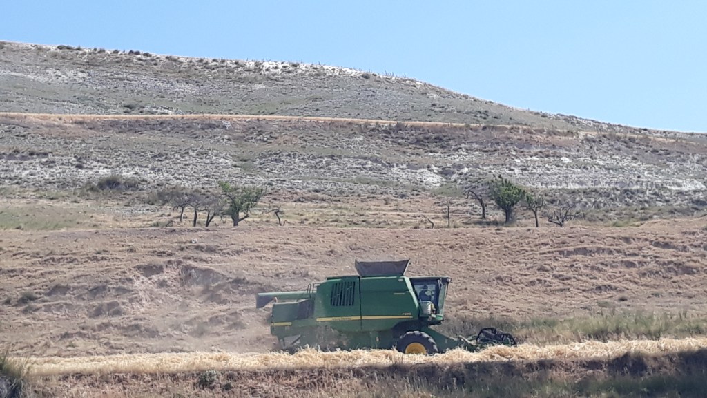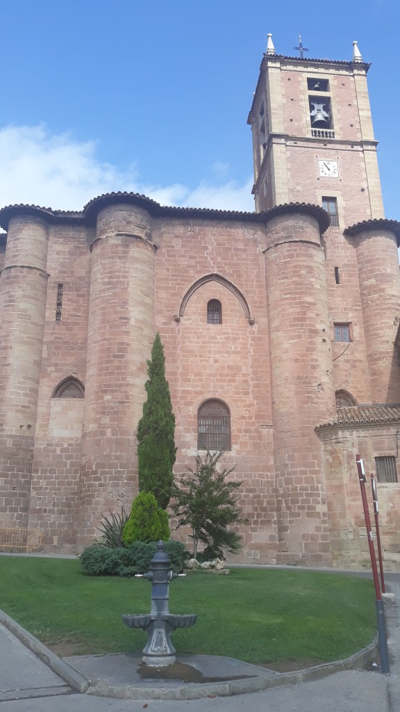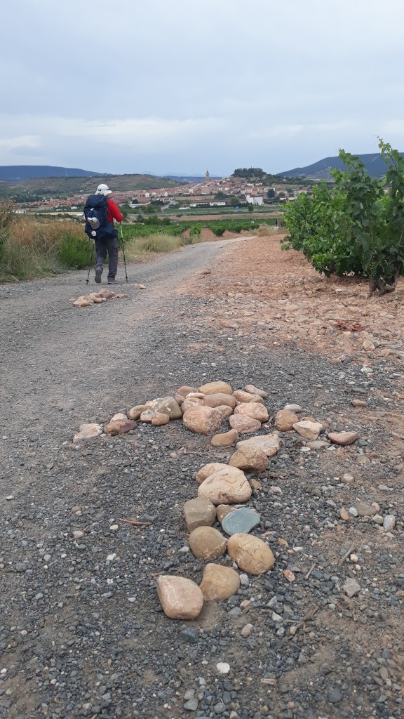 Today was a delightful, cloudy 10-mile hike from Ventosa to Azofra. Our roommates last night were a father, daughter, and mom. They never actually spoke to us but lots of smiles and head nodding were exchanged. It’s amazing how genuine acts of kindness and cooperation can be expressed through a simple facial expression. They were in bed and asleep long before our 10 p.m. curfew and their 4:30 a.m. departure this morning was an indicator for that choice. They were in good company as I heard the two rooms next to us empty out as well. The current temperatures are a challenge for many peregrinos.
