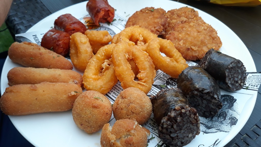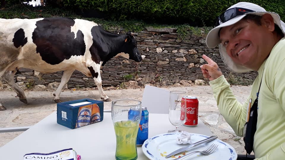 We have now entered our third and final region of Spain which is Galicia. It is not uncommon to see cows being herded through the tiny villages to their grazing fields in the morning and then returning in the evening. As you can imagine it can leave a smelly atmosphere in the air and on the community streets. Some villages are much better at keeping their streets clean after the morning bovine march than others. Our evening destination was not one of them. We didn’t even look for our albergue, we simply moved on to the next available village. We stumbled on another gem! Most bars/restaurants include a pilgrim’s meal which includes an appetizer (that could be a meal in itself), an entree, dessert and a bottle of wine for around $10 a person. We have enjoyed these meals as it serves as a great opportunity to taste local dishes and wines.