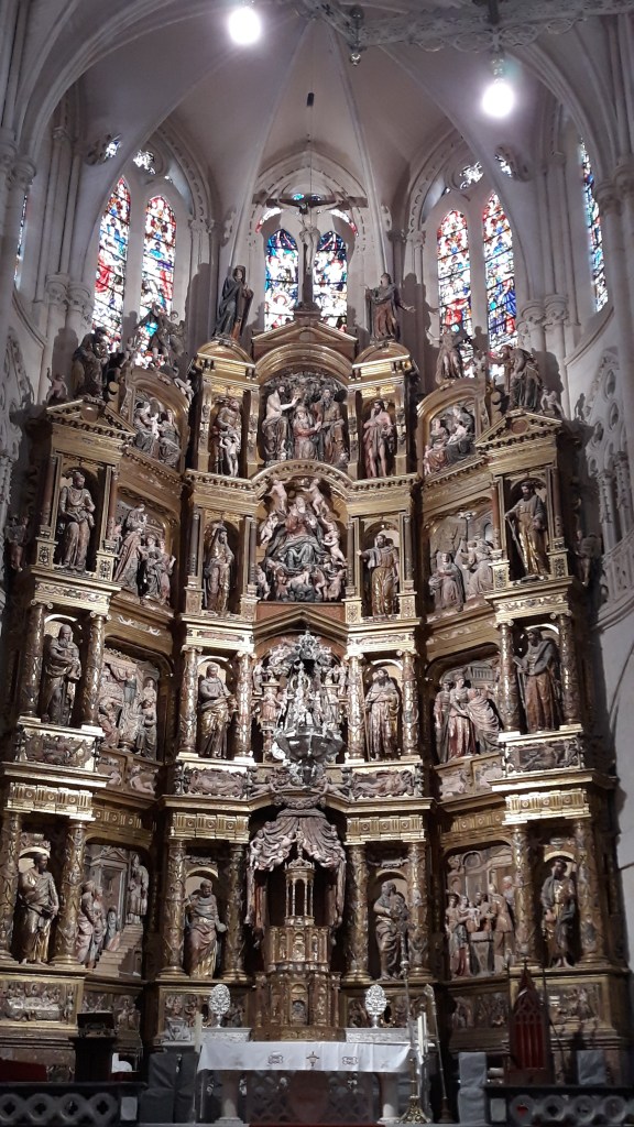 Our only goal for our rest day in Burgos is to visit the cathedral. On our way to the plaza we pass a podiatrist’s office. A lady dressed in crisp scrubs is sweeping the sidewalk area just outside the entryway and she greets us with a warm, “Buenos Dias.” A few steps later Vidal is turning around making his way back to the doorway. He gives the lady a brief history of my toe issues and asks if she can see me. She listens intently then advises she will ask the doctor if I can be seen as a walk-in as she is the receptionist. I’m thinking there is no way we will be seen, how much will this cost and most importantly, will I be able to continue on the Camino. After speaking with the doctor, the receptionist advises us to have a seat as I will be the third patient of the day. We take our seats and continue visiting with the receptionist and the patient who will be seen before me. When both women learn we are walking the Camino they begin to give us names of albergues and casa rurals we should consider during our next four days as we traverse the Meseta. The first thing the doctor says when she sees my toe is, “You need to take a deep breath. There is no infection and you will be able to continue on.” I exhale a huge sigh of relief. Basically, I have a blister under my toenail. I need to continue the care I have been practicing with a few changes. She applies an antibiotic cream, covers with gauze, tapes it up and smiles. She prescribes the cream and tells us we can have it filled at any pharmacy. As we proceed to the check out area she sends us off with a hearty “Buen Camino.” We are expecting to be told we owe quite a bit and have prepared for it. Doctor’s visit $35, meds and gauze from pharmacy $5. That’s a blessing!