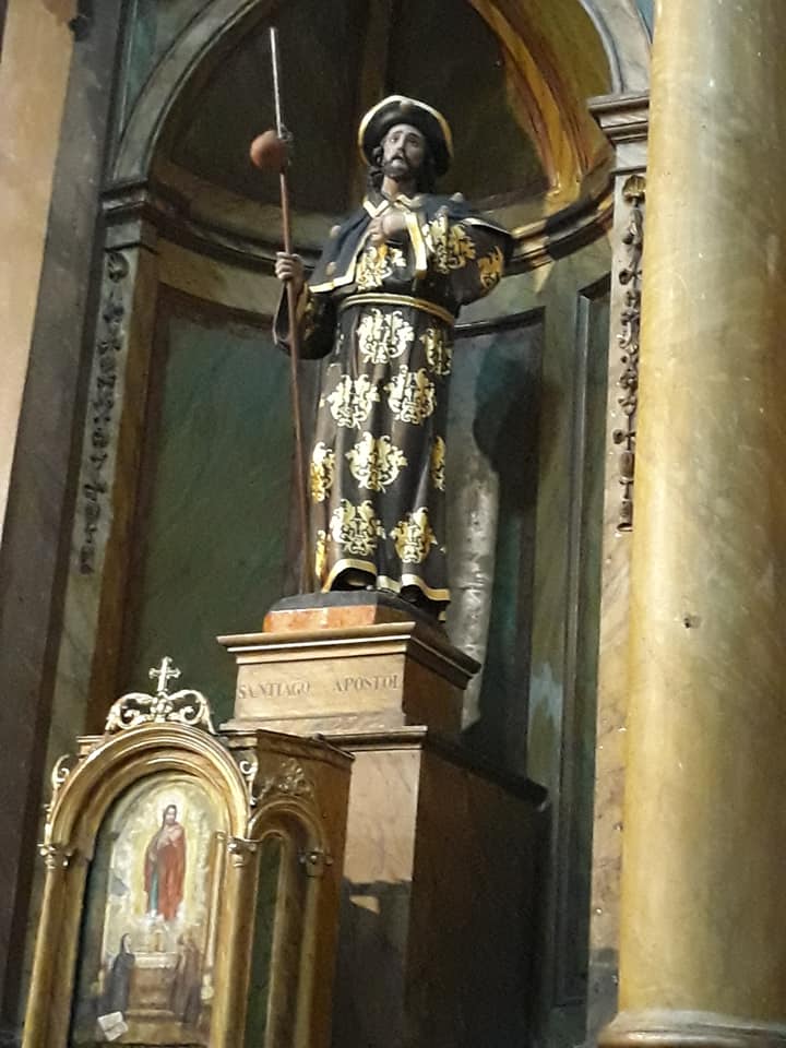 After breakfast we begin trickling out onto the path before us. Thick fog conceals views of the valley below; yet provides for comfortable hiking. Just as yesterday, we continue our practice of frequent stops for my foot care regimen. We are easily proving why we have our Slow Strollers on the Camino turtle patch on our backpacks. We are the last of our group to arrive at the albergue in Roncesevalles. Our accommodations exceed our expectations for the third time. This albergue with its capacity of 183 beds is run like a well oiled machine. Our dinner assignment is at a table of eight. Two brothers, their sister and her husband from Ireland and a father/daughter duo from Los Angeles. We had met Peter and his siblings on the day’s hike. He couldn’t remember our names as we leap-frogged one another along the way so he called us the Longhorn Texans. Salvador brought his daughter, Andrea on this journey to celebrate her college graduation. They invite us to join them for the pilgrim’s mass and church tour after the completion of our meal. It was the perfect way to end our day.