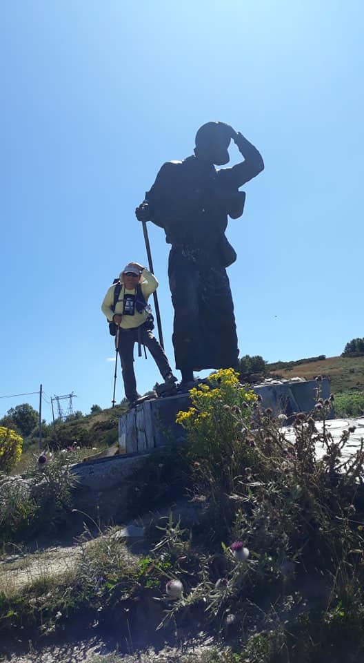 With that sense of relief and an option to take a route alongside the road or a mountainous one. Guess which one Dora the Explorer chose? Although it is the longer option I must admit being away from the roadway and the views were well worth the extra effort. We didn’t see any other peregrinos until the trails rejoined. It can be a bit unnerving not seeing others on the trail; however spotting the painted yellow arrows on a rock or fence post is reassuring. We’ve been following those arrows for 400 miles.