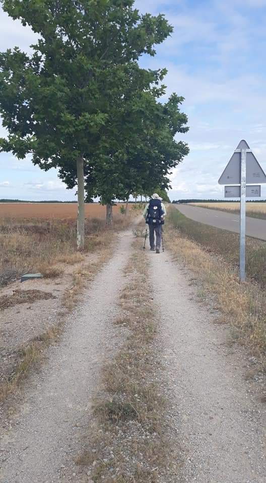 As we walked through Castrojeriz looking for the casa rural that had been recommended to us by the podiatrist’s staff in Burgos we passed an open bar. I hear a gentleman say, “Alexa, play some 70’s music.” Maybe it was fatigue or perhaps the perfectly spoken English but I found it amusing. I said (to no one in particular), “Really, Alexa in Spain, in this tiny town?” Then came the reply, “Alexa? We invented Alexa!” I giggled, took a few steps back and waved. We locate the casa rural two doors down from the bar. We are unable to get an answer to our knocking on the door or our phone call. We decide to walk back to the bar for a couple of drinks and formulate Plan B. Vidal orders and the owner asks what made us return. He smiled and advises he has a private room available. We no longer have a need for an alternate plan. The saying goes, “the Camino provides”; I think God puts it into motion. 😉