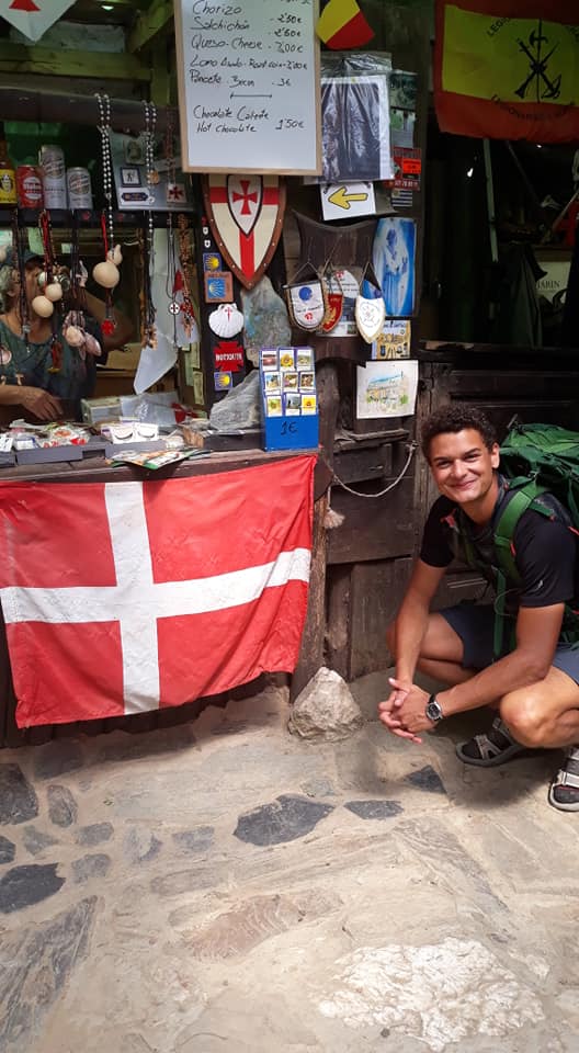 The journey is just as has been described with an added incredible surprise. On our last stop before reaching the cross we encounter Joaquin. He is the young man from Denmark whose grandfather was an American war hero. We last saw him July 8th. He shares with us that he is behind his schedule as he became very ill and had to take five days of rest. We walk to the cross together along with Kelly who has joined us for this portion of the trail as her knees will not allow her to keep the pace of her group.