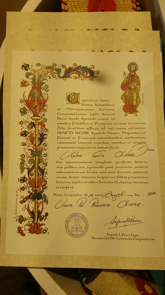 First order of business is to locate the pilgrim’s office and obtain our Compostela. Our certificates of completion will have our start date and location, our end date, and our names written in Latin. I had read that if one walks the Camino in memory of a loved one their name could also be added. I knew Vidal’s dad had been very heavy on his heart this entire journey and emotions had spilled over on more than one occasion. I mentioned to him that he should ask about having his dad included with his own. We were not attended by the same staff member and I was several spots over from him when it was our turn to produce our credencial. I completed my paperwork and began walking toward him just as he was wrapping up his own. The gentle tears rolling down his cheeks told a greater story than his words will ever be able to convey.